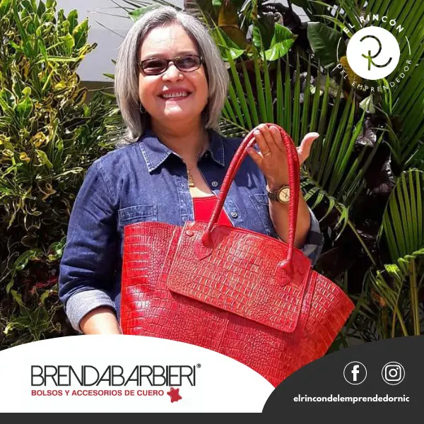 Brenda Barbieri inició su negocio de bolsos y accesorios de cuero, luego de tomar una reflexión que le permitió darse cuenta de que podía reenfocarse en algo laboral que le diera la libertad de hacer lo propio, de sentirse útil en una nueva faceta de su vida, es así como decide emprender con la certeza de ser ejemplo para sus hijos y dar a conocer que la edad no es una limitante para crear un negocio.