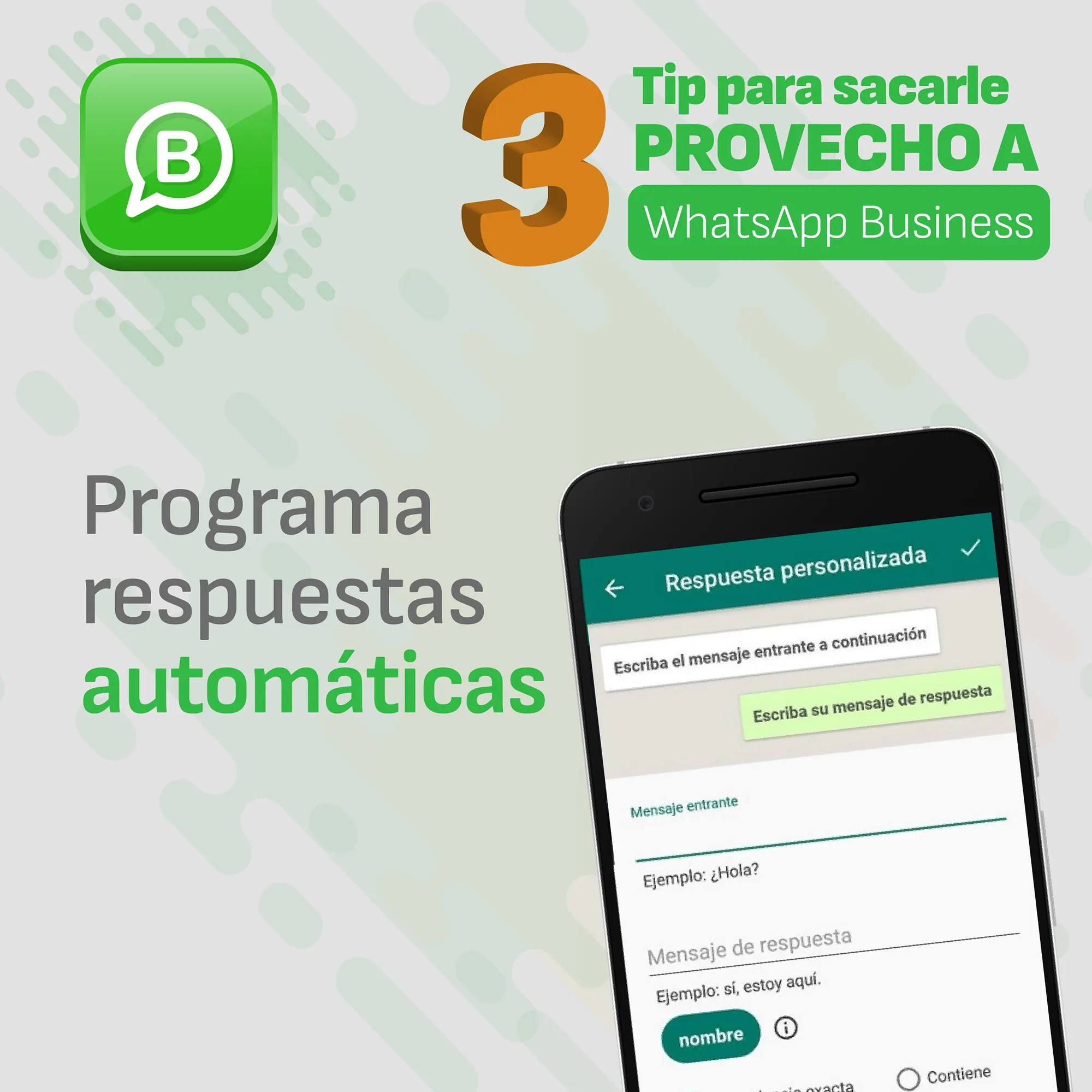 WhatsApp Business te da opciones de mensajes automatizados para programar mensajes de bienvenida, o de ausencia en caso de que no estés disponible para responder dudas, inquietudes o comentarios de tus clientes.